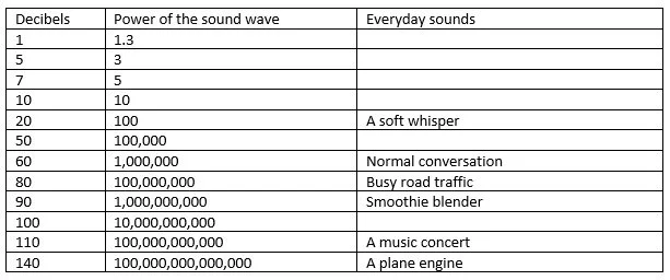 To put the decibel into perspective, here’s a table of the decibel level of everyday sounds, and how this corresponds with what the human ear can hear: